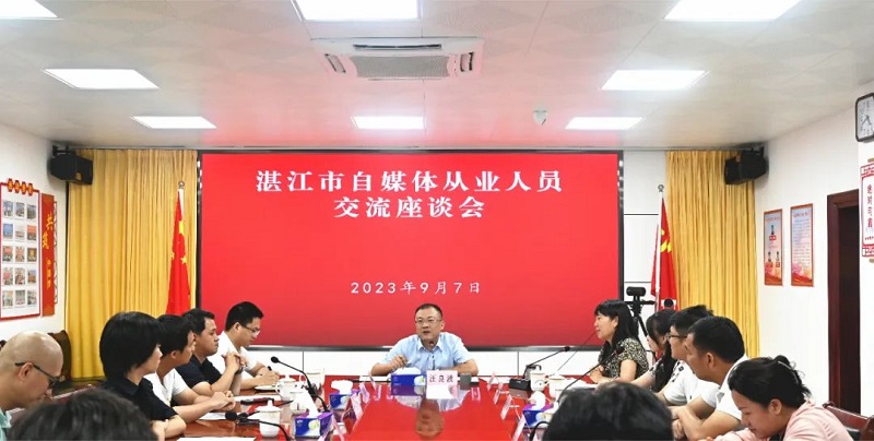 9月7日,湛江市自媒体从业人员交流座谈会召开。湛江市委网信办主任、市互联网行业党委书记汪良波与自媒体从业人员面对面交流,共同探讨如何助推湛江从“网红”变成“长红”、把线上“流量”转换为线下“留量”,充分展现湛江良好城市形象,弘扬主旋律、传播正能量、引领新风尚,为湛江全力建设省域副中心城市、加快打造现代化沿海经济带重要发展极提供坚强的网络舆论支持、可靠的网络安全保障和有力的信息化支撑。