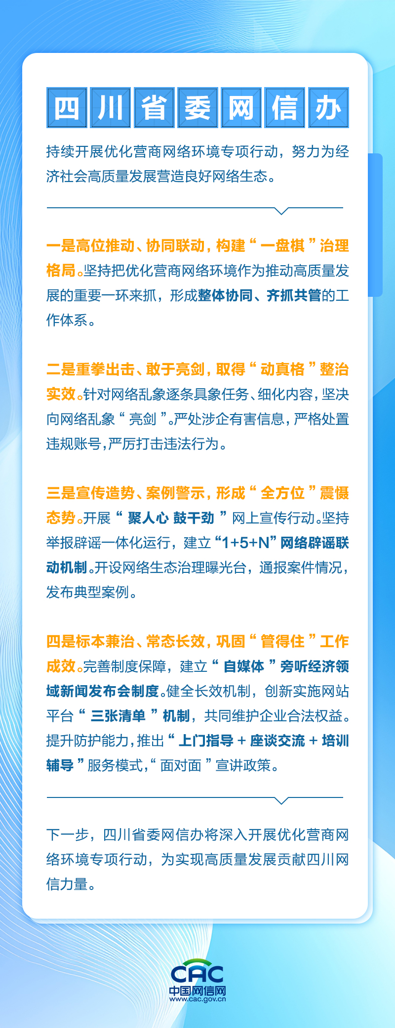 优化营商网络环境是优化营商环境的重要内容,也是网信部门的重要职责。近日,中央网信办在北京召开优化营商网络环境工作经验总结交流会。围绕优化营商网络环境工作,北京、上海、福建、四川等地网信办,以及微博、腾讯、抖音等平台,探索形成了一批好经验好做法。现将有关发言摘编如下,以供交流。